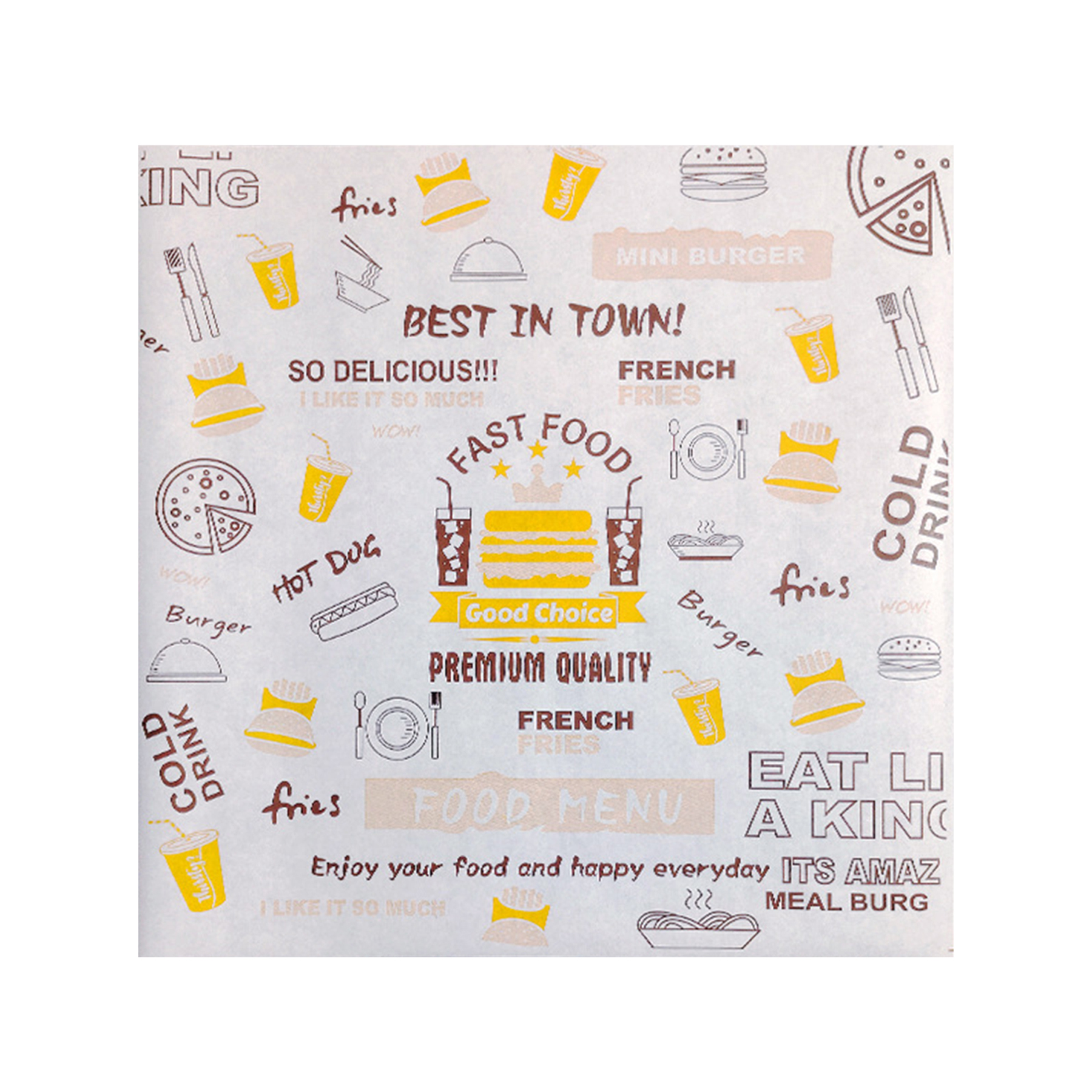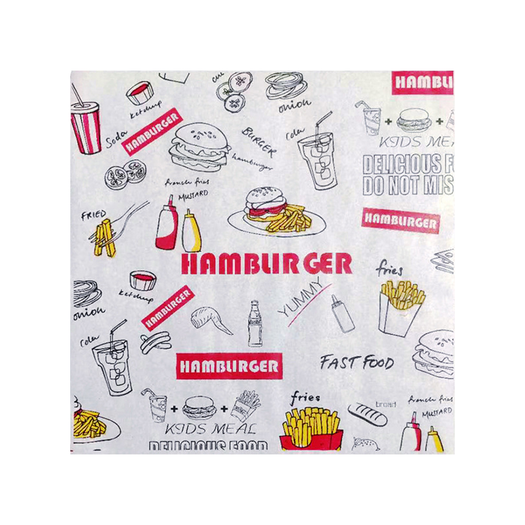 This 40g PE - coated paper is designed for packaging hamburgers and other food items. Sized at 29.5*28CM, it offers a suitable dimension for wrapping. The hamburger - specific paper comes in a clean white color. Employing flexographic printing technology, it can display up to 5 colors, enabling vivid and eye - catching designs that enhance brand visibility and product appeal. Ideal for the food service industry, it combines functionality with aesthetic - printing possibilities.