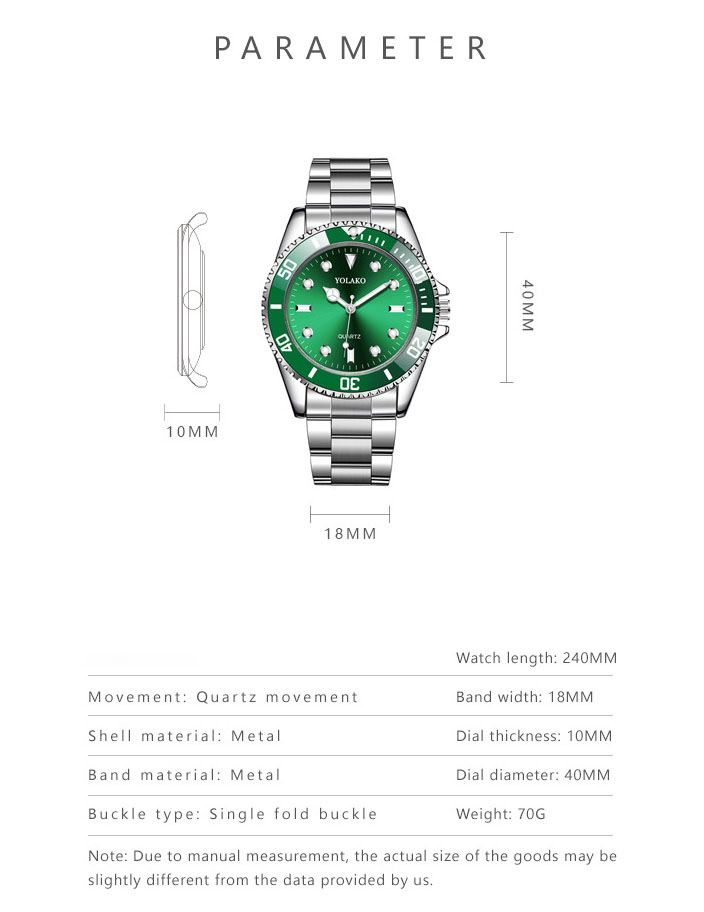 Elevate your style with this men’s quartz watch. Featuring a sleek stainless - steel strap and a diver - inspired dial, available in green, blue, black, or red. Precise quartz movement ensures accurate timekeeping. Ideal for daily wear and casual outings, blending fashion and functionality.