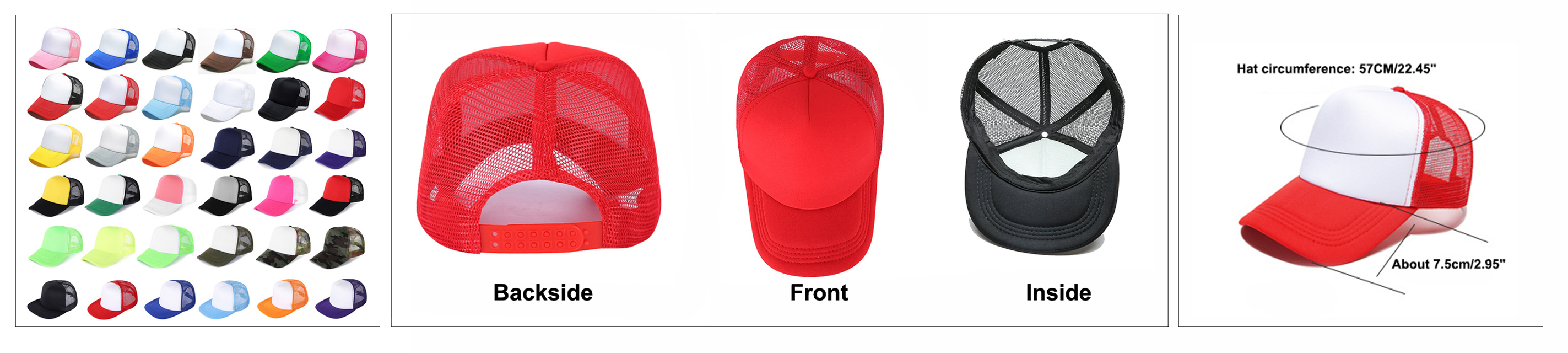 This sponge mesh cap, designed as an ideal advertising cap, combines practicality and brand - promotion function. Made of high - quality polyester, it features good breathability with the mesh structure, ensuring comfort during wear. The 57CM (22.45 inches) head circumference fits most people, and the plastic back buckle allows for easy adjustment.