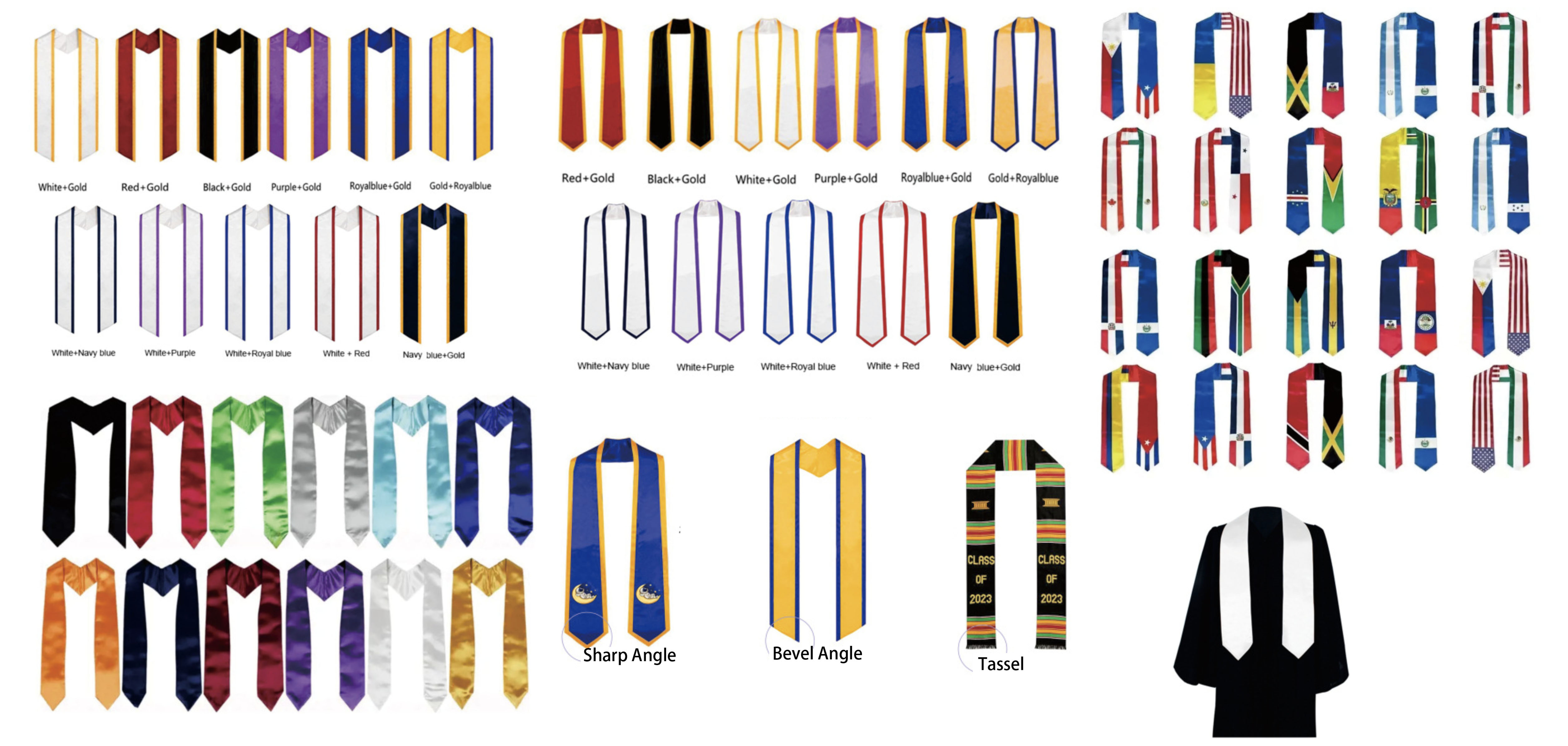 Browse our premium collection of graduation attire, perfect for commemorating your momentous academic achievement. Our stoles are expertly tailored from top-quality satin polyester, representing the apex of design and craftsmanship. These stoles serve as the essential element to complete your graduation ensemble, effortlessly complementing a wide range of gowns across different degrees. Designed with both versatility and style in mind, our stoles promise both an elegant look and supreme comfort during your celebration. Beyond just a graduation staple, these stoles can also enhance choir robes with a touch of class, for a look that's both polished and dignified. As a timeless memento, they preserve the memory of your educational journey. Available in two standard lengths, 72 inches and 60 inches, and offering customizable color options, our stoles add a personal flair to your academic wardrobe.