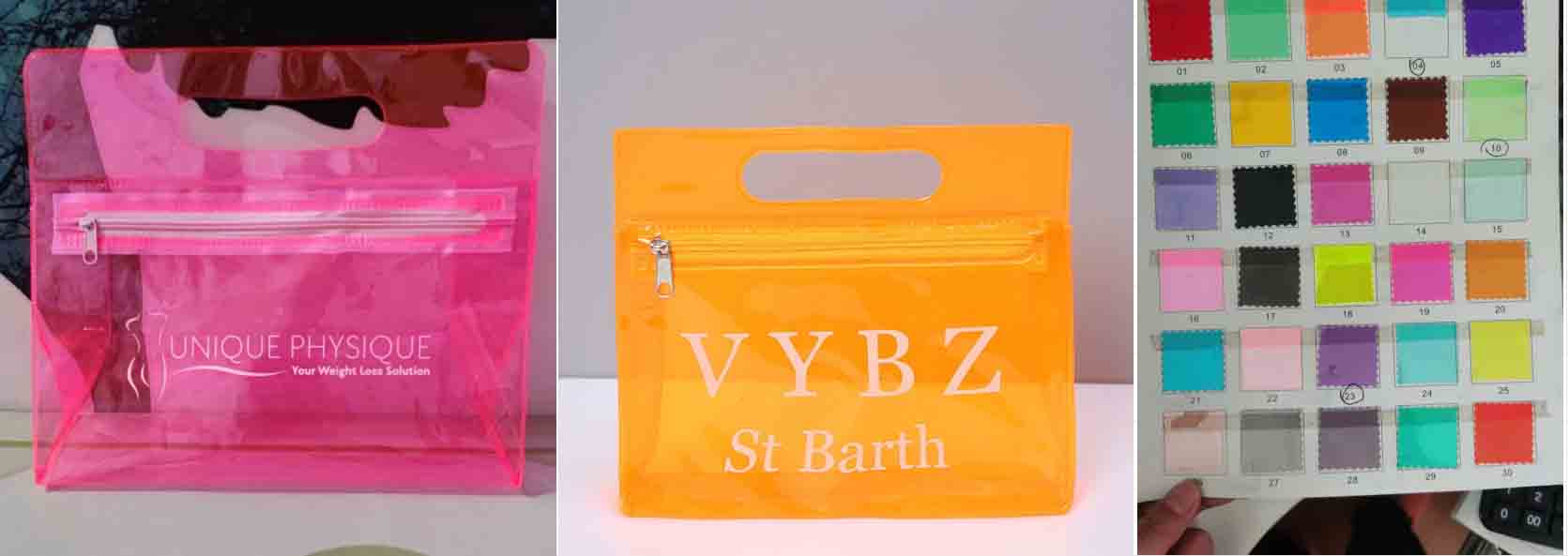 This PVC clear vanity bag is a practical and stylish choice. Measuring 24x23x7cm (9.44'' x9.05'' x 2.75''), it offers ample space. With 30 different color options, you can pick the one that suits your taste. Moreover, we can print your logo in 1 color of full colors at 1 location, making it a great promotional item or a personalized accessory.